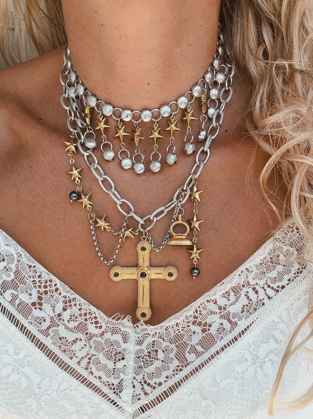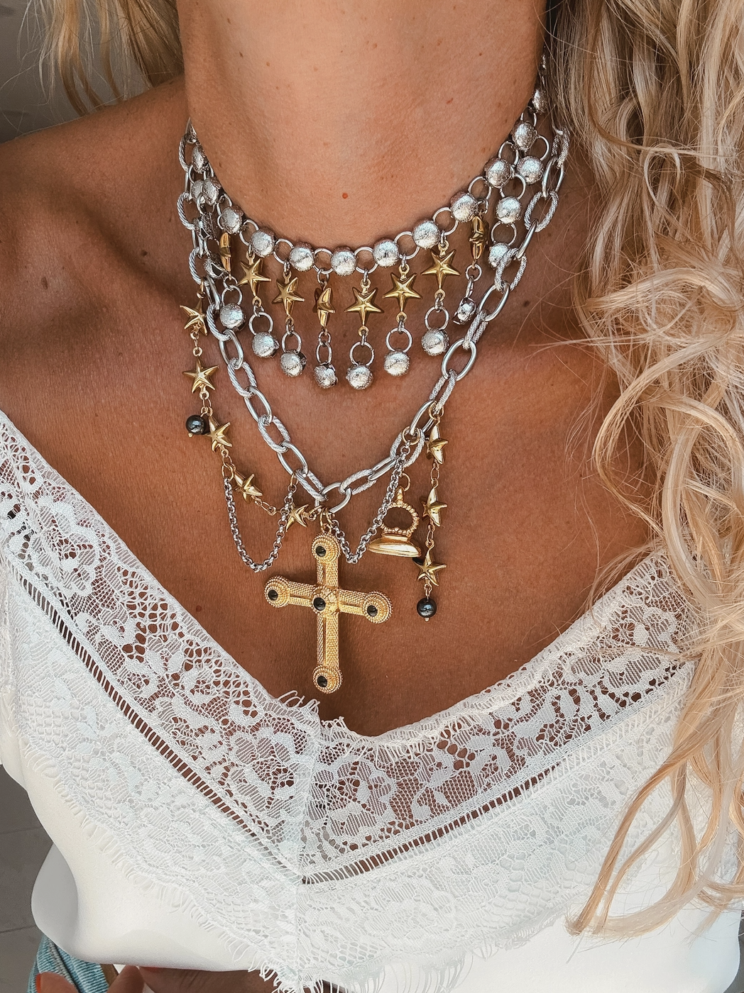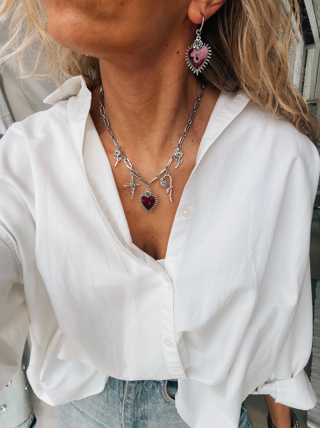 ABEL Twist Chain Single Red Heart and Sun Drop Necklace