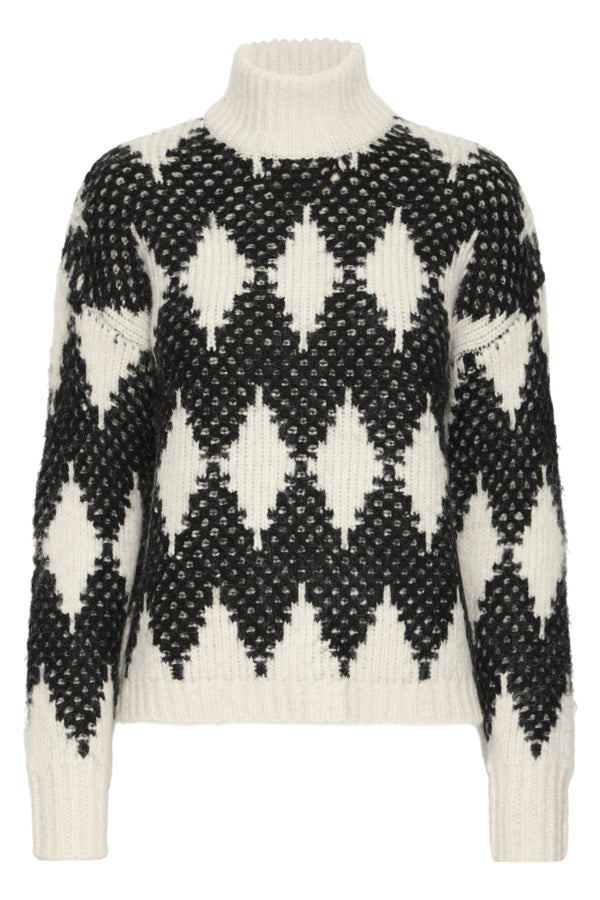 OMHU Jacquard Diamond Black and White Roll Neck Jumper