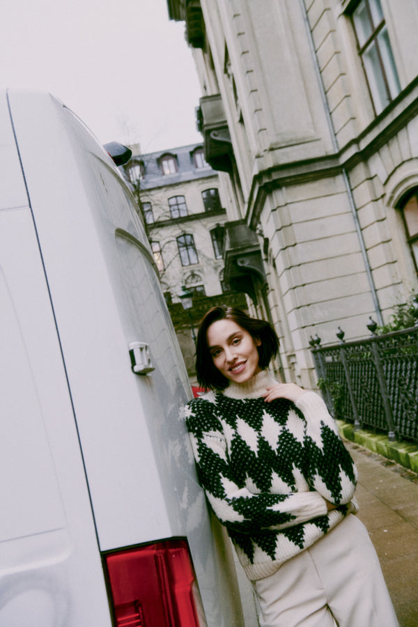 AMPLE Fair Isle Folk High Neck Jumper in Cream Mix