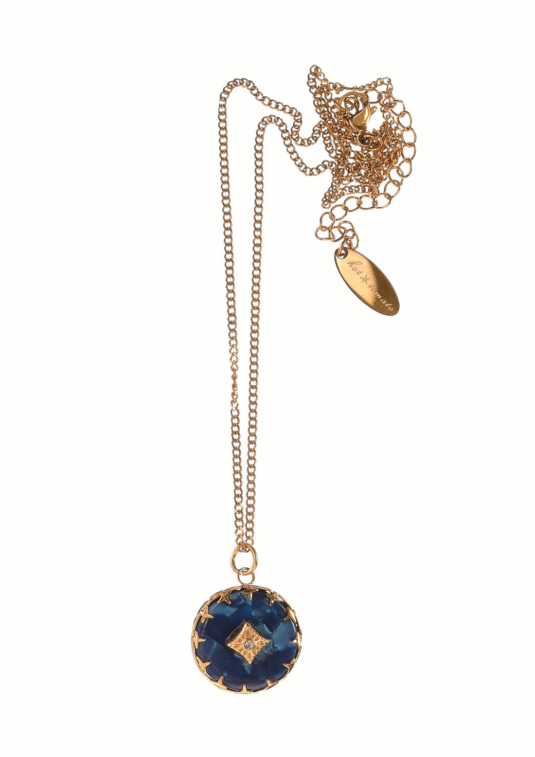 Harlequin Deep Sea Blue Pendant Necklace on Delicate Gold Chain - JJ120
