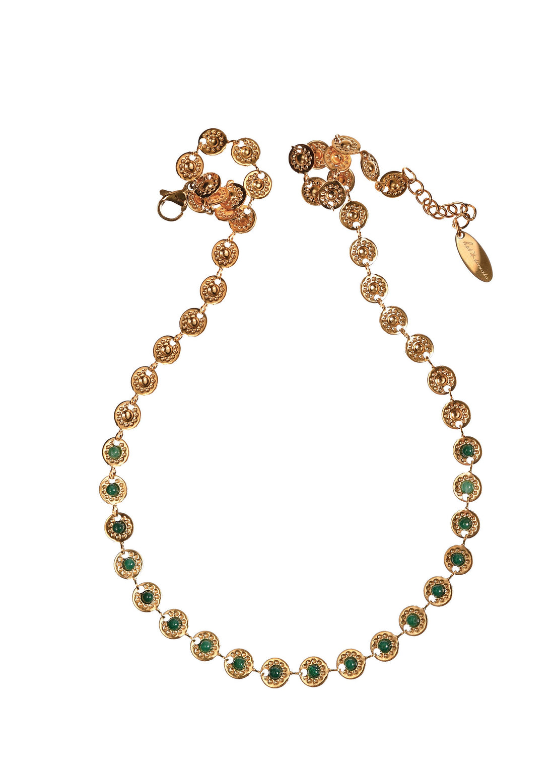 Shields of Gold Necklace with Green Stones - LG230