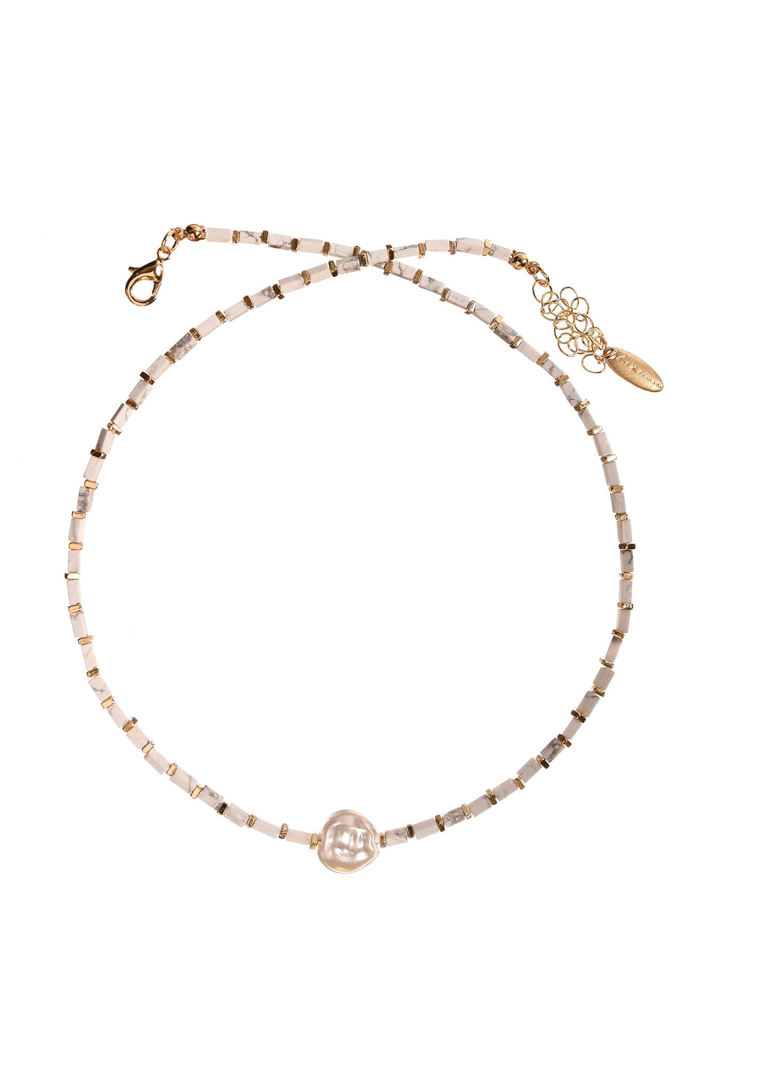 Stone Slip Bead Necklace with Captured Natural Pearl - PA592