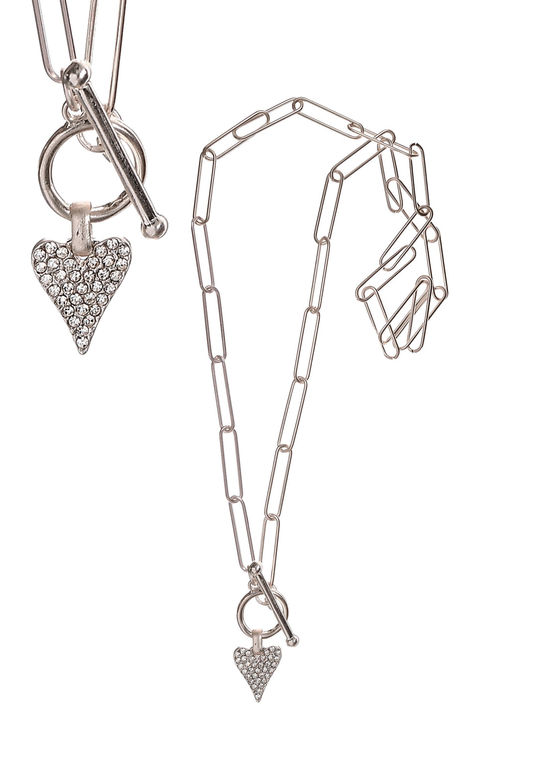 Paperclip Chain Necklace with Dimante Hear Pendant in Silver - SC416