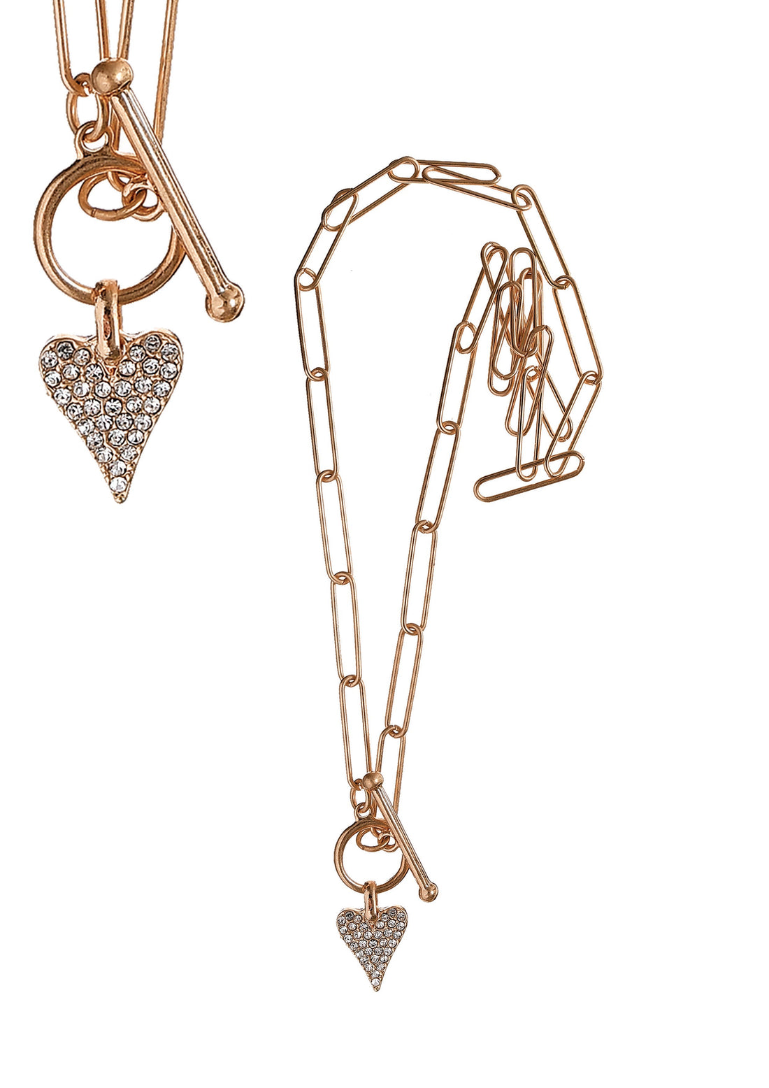 Paperclip Chain Necklace with Dimante Heart Pendant in Gold - SC417