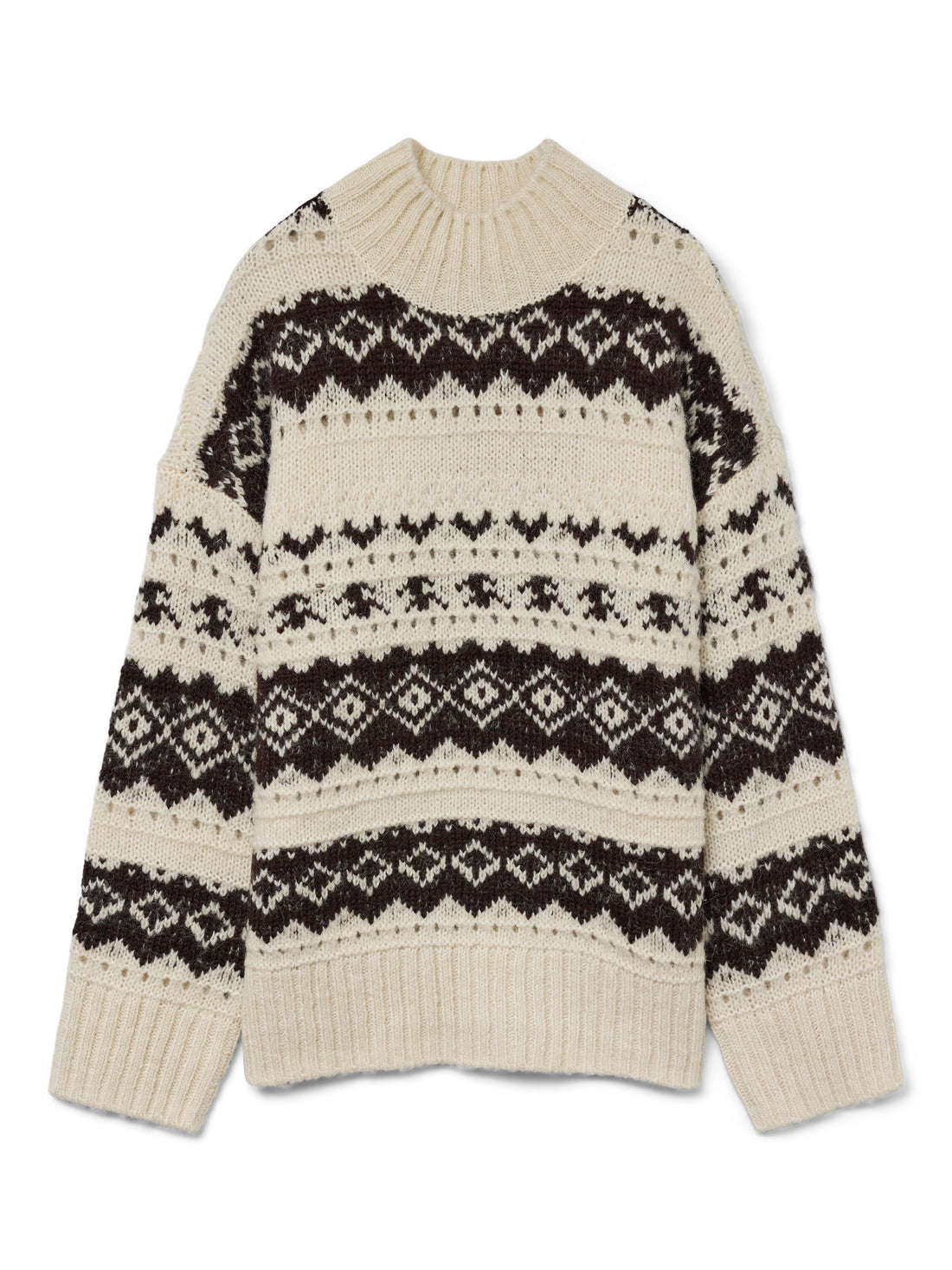 AMPLE Fair Isle Folk High Neck Jumper in Cream Mix